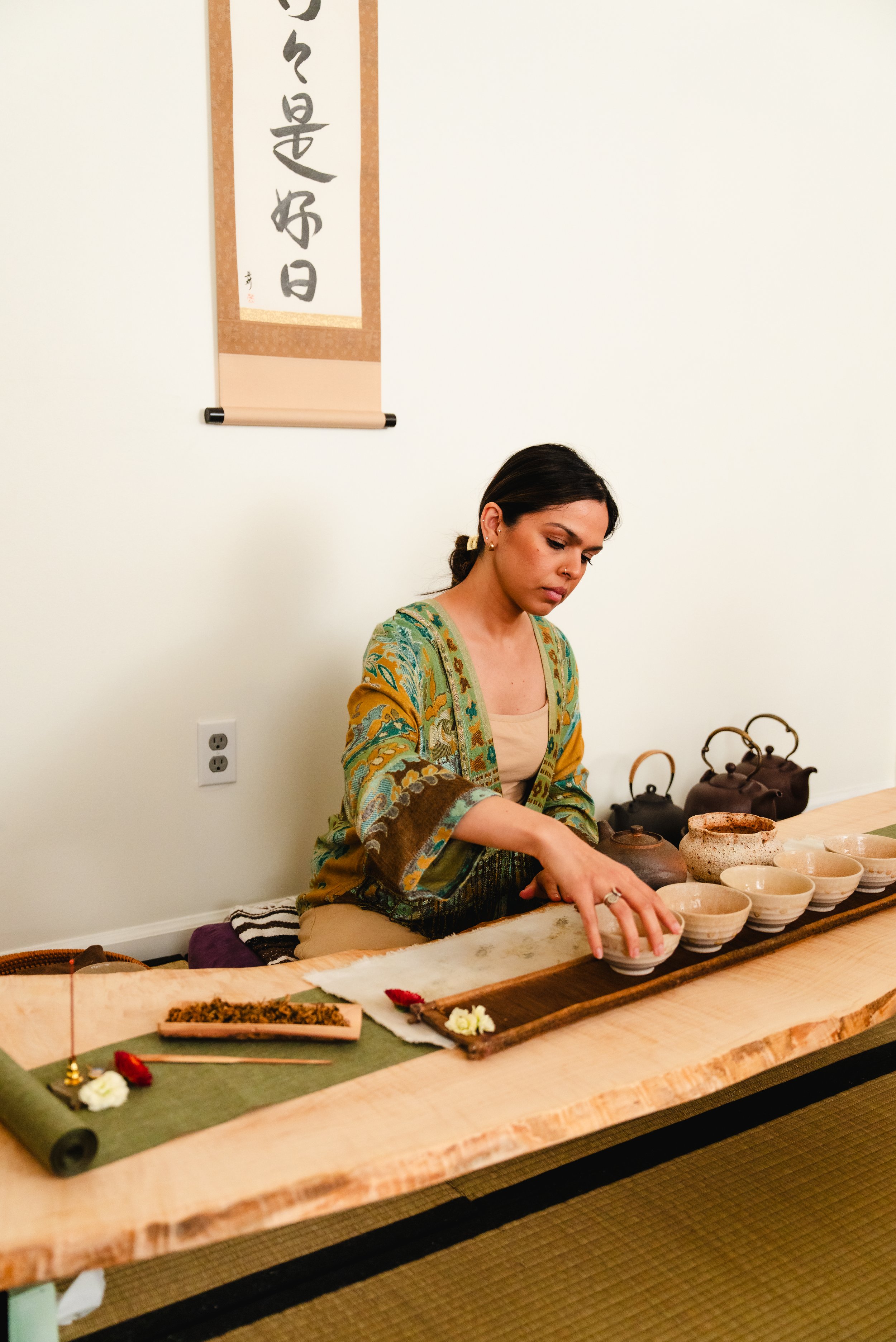 Rooted in the lineage of Cha Dao, The Way of Tea is a sacred practice of drinking tea in silence ceremony style. It’s an extremely meditative and healing experience. A bow and gratitude to the lineage as taught by our teacher Wu De of The Global Tea Hut.